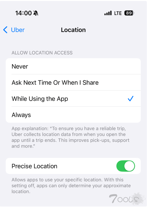 对于注重隐私、只允许应用程序在使用过程中访问其位置的用户来说,这可能会让他们感到不安。如果你限制应用程序仅在使用过程中访问你的位置,Uber 怎么会知道你在哪里呢?