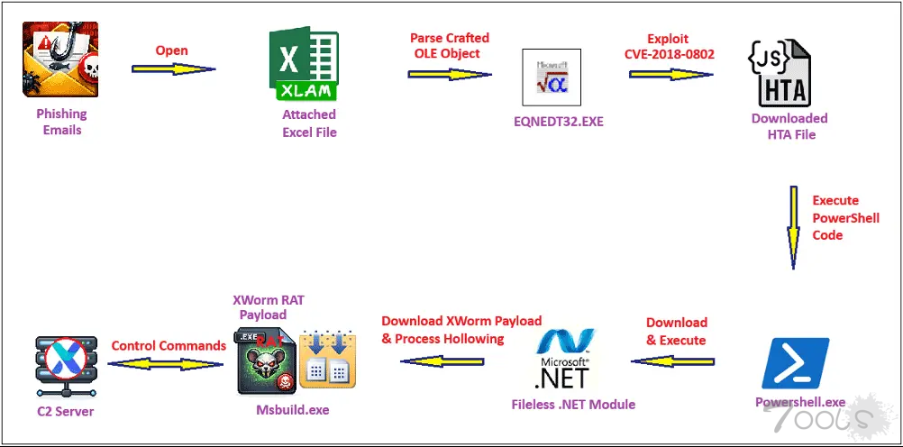 新型 XWorm RAT 攻击活动利用主题钓鱼诱饵和 CVE-2018-0802 Excel 漏洞来逃避检测