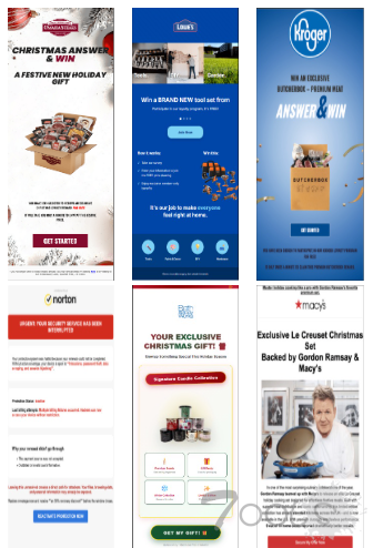 这些邮件包含一个带有超链接的图片,宣称提供免费奖品或错误地声称订阅服务已中断。当受害者点击图片时,会被重定向至一个复杂的流量分发系统。