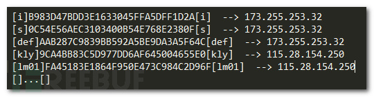 2)获取上面的配置信息后,模块G根据自身的渠道ID读取对应的条目,进行两层解密,然后进行格式化解析,结果如下: