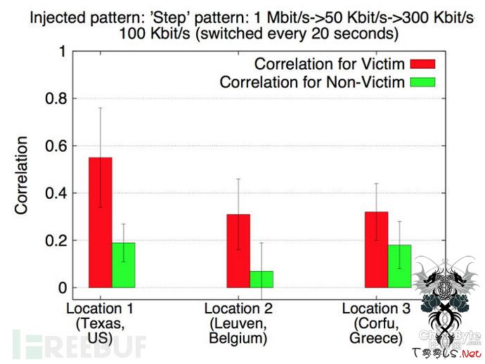 去匿名化的方法是向Tor出口节点相关联的TCP连接中个注入一个重复的流量模式(如HTML文件),然后把Tor客户端的出口流量和路由器上所产生的流量流动记录作对比,从而识别Tor用户的身份。