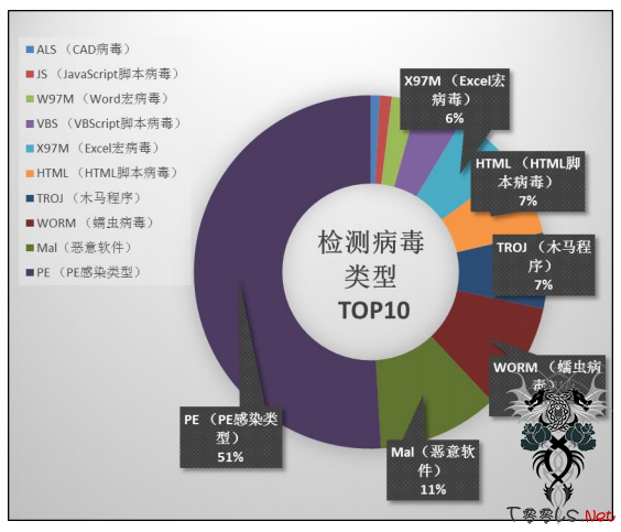 依然是检测数量最多的病毒。该病毒文件是一个被修改过的系统文件 sfc_os.dll,感染系统之后将使系统失去文件保护的功能。其它检测较多的病毒还有恶意软件(11%)和蠕虫病毒(10%)