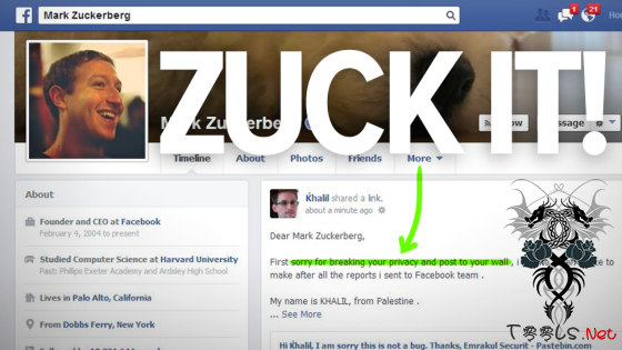 作为Facebook的创始人,扎克伯格也玩过黑客技术,在哈佛读书期间,他侵入了学校的一个数据库,将学生的照片拿来用在自己设计的网站上。而如今,他也逃不过被黑的命运,而且不止一次被黑客黑过。2013年8月,巴勒斯坦一位名叫哈里尔•西瑞特(Khalil Shreateh)的黑客侵入Facebook创始人的Facebook帐户,并在主页上发表“状态”。