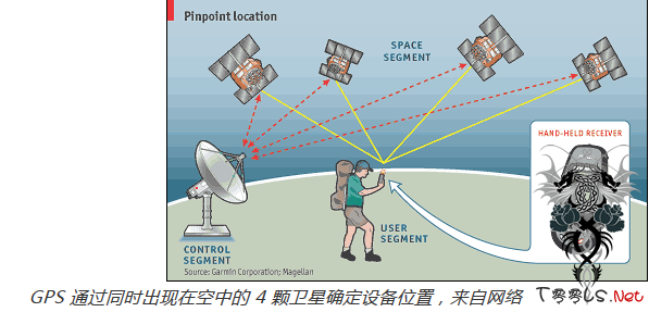 GPS 通过同时出现在空中的 4 颗卫星确定设备位置,来自网络