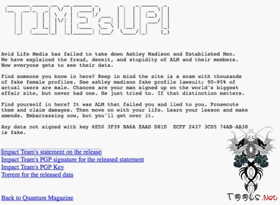 现在,一个月到期,这群黑客们说到做到,今天他们公布了网站的所有数据库dump的一个9.7G压缩包的BT种子,里面有3700万名这个出轨网站的用户信息。