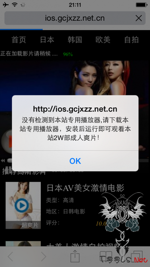 没有越狱的iphone,拿着去搜黄网,经常碰见这样的,更屌是提示下载的播放器,根本不经过app store 就直接下载到桌面了。。而且能用,这是我所不能理解的