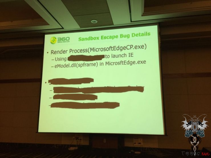 为了公众安全,MJ向微软发了无数邮件,并且把这一情况面对面反映给微软漏洞计划的负责人,但是没有得到非常积极的回应。所以,已经等待半年的MJ决定不再给微软留面子。但就在他来韩国之前,微软方面联系到他,希望向他致歉,并且修复漏洞。为了谨慎起见,MJ临时决定涂抹掉了一些最关键的信息,而会务组也没有决定是否会把这场演讲的实况公布于众。