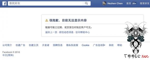 点黑客页面附带的超链接处,跳转至Facebook页面后显示页面设有浏览权限,无法显示。
