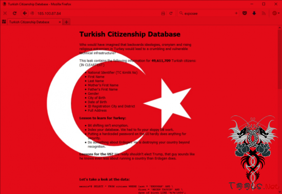 土耳其某机构被黑 致近5000万名土耳其公民个人信息在网上曝光