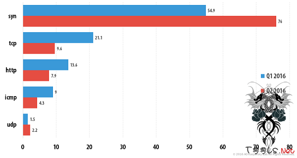 随着物联网设备的不安全扩散,搜索构建僵尸网络的任务也变得更加简化,而Linux机器人也是最适合发起破坏性SYN DDoS攻击的工具——它是本季度最高发的DDoS攻击类型,紧随其后的是TCP、HTTP、ICMP、以及UDP轰炸。
