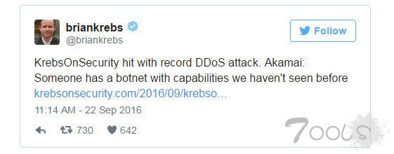 9月21日,Krebs 发推文说“有人拥有具有超能力的僵尸网络,这能超能力,我们从未耳闻。”