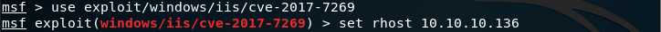 进入漏洞模块:use exploit/windows/iis/cve-2017-7269