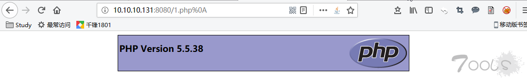 接下来我们访问 [url]http://10.10.10.131:8080/1.php%0A[/url] ,成功解析