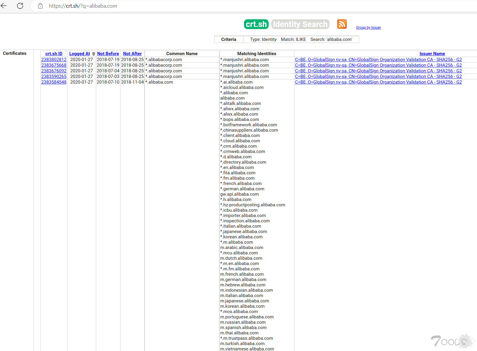 分享一个国外权威网站证书颁发机构和证书指纹搜索网站 crt.sh