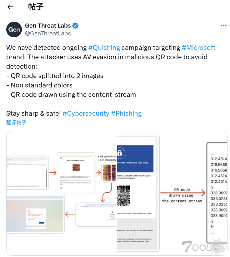 当 Gen Threat Labs 分析师注意到企业 Office 365 通知中存在冒充微软品牌的异常二维码附件时,初步报告浮出水面。