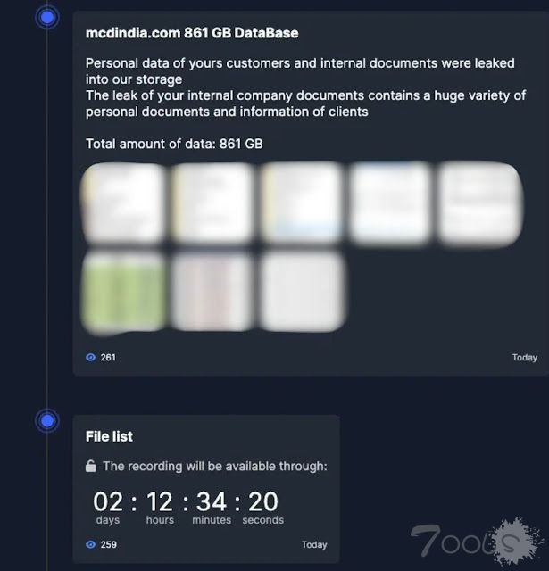 Everest 勒索软件组织声称对针对麦当劳印度公司的一次重大网络攻击负责,据称该攻击窃取了 861 GB 的敏感数据。