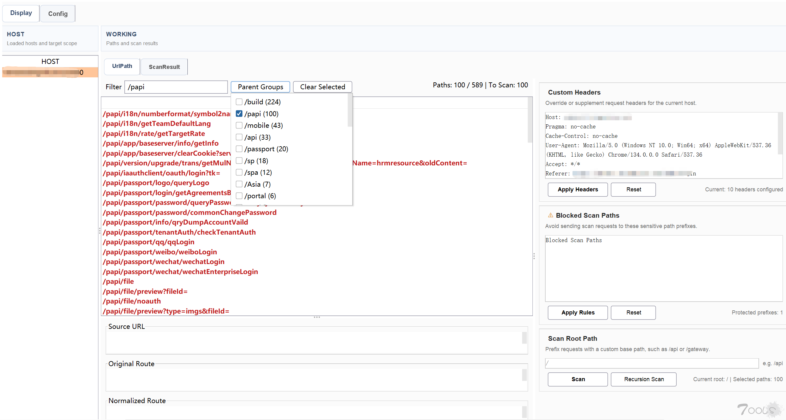 - Blocked Scan Paths:支持白名单Routes添加,加入白名单后将不再对此路径进行发包扫描。
