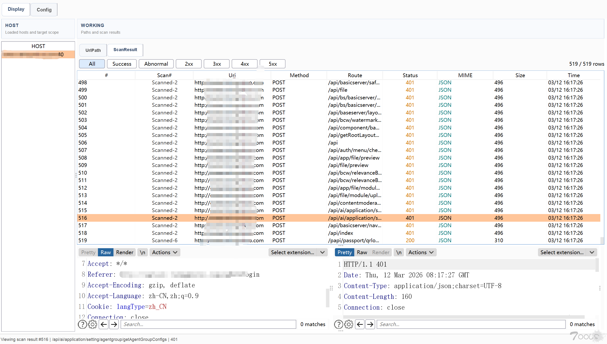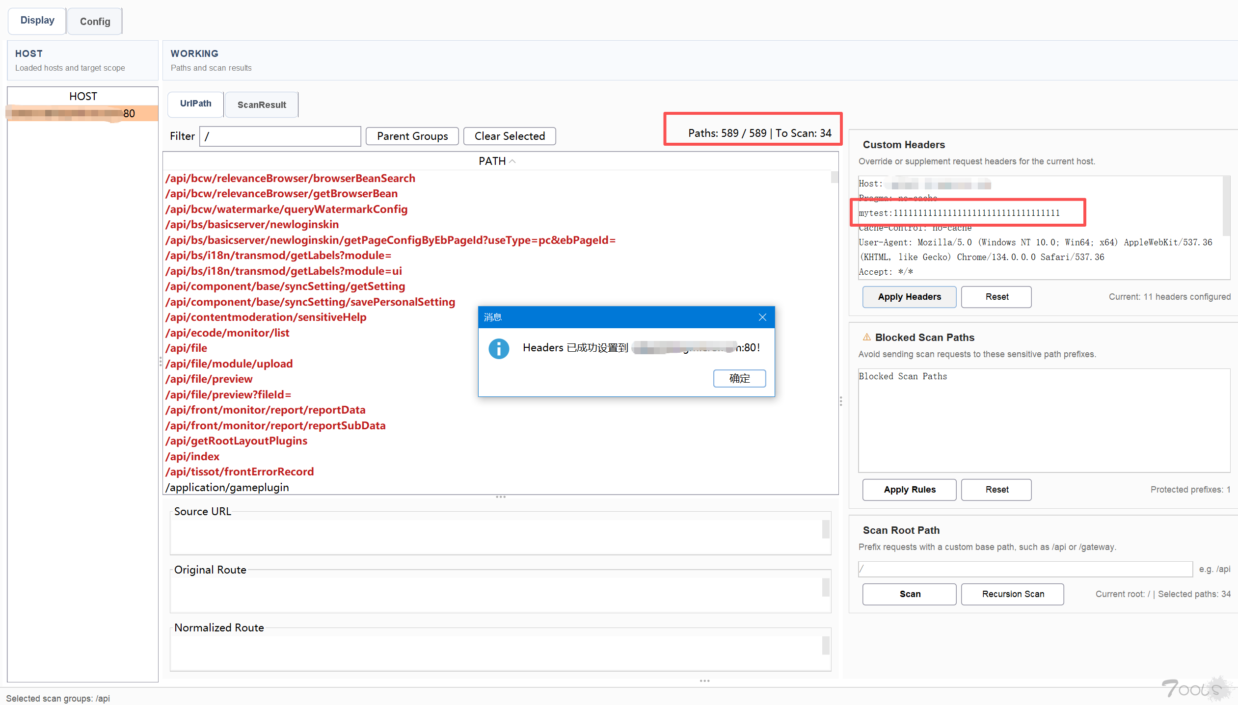 - UrlPath:支持路由的勾选与过滤,列出所有Api的数量与路径协助分类扫描。