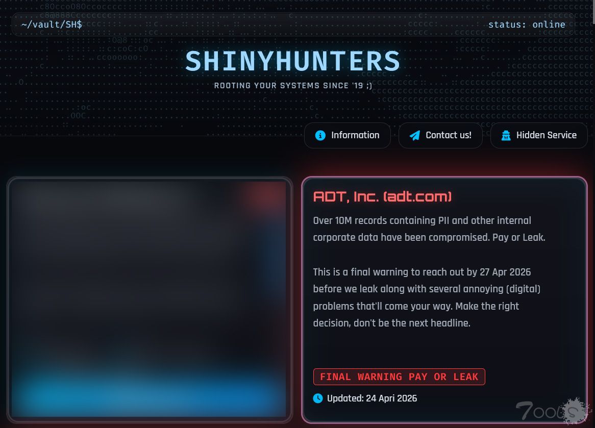 在这份声明之前,ADT在ShinyHunters数据泄露网站上列出了攻击者声称窃取了1000万条包含客户个人信息的记录。